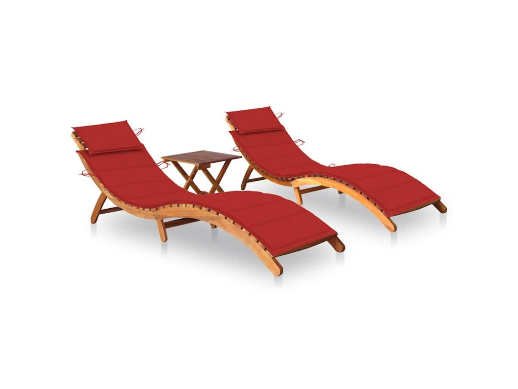 Zahradní lehátka 2 ks se stolkem a poduškami masivní akácie 3077382