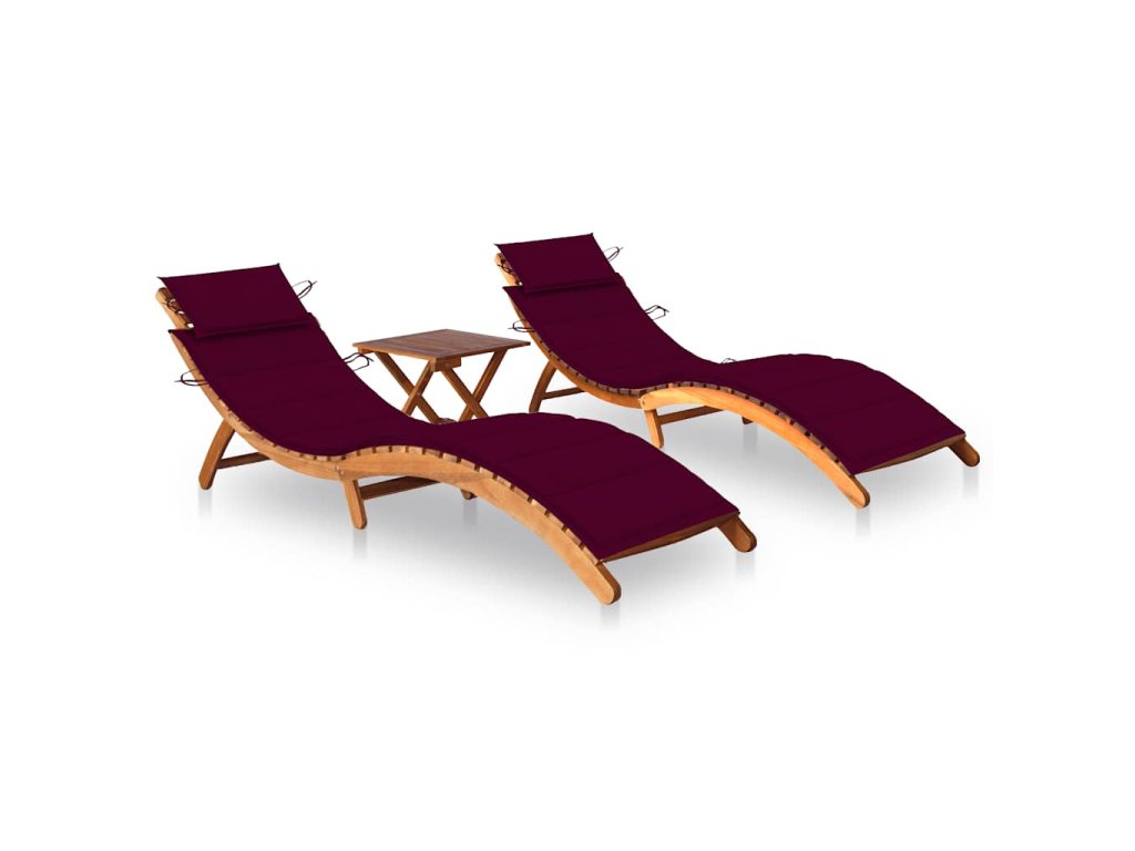 Zahradní lehátka 2 ks se stolkem a poduškami masivní akácie 3077385