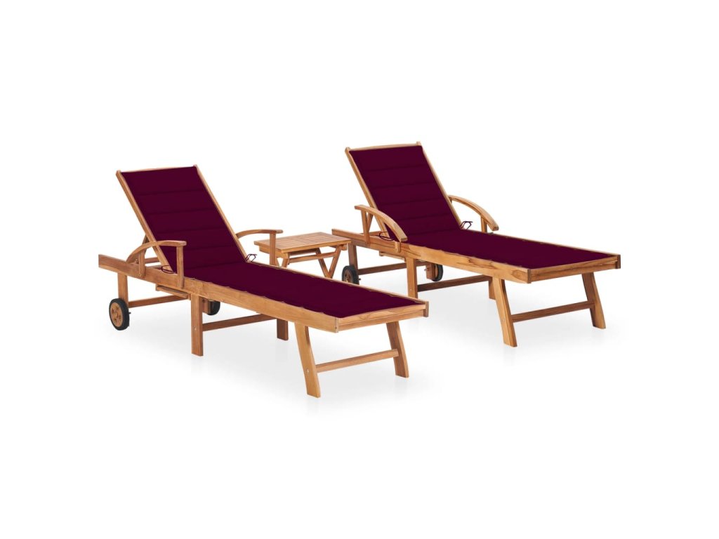 Zahradní lehátka 2 ks se stolkem a poduškou masivní teak 3073180