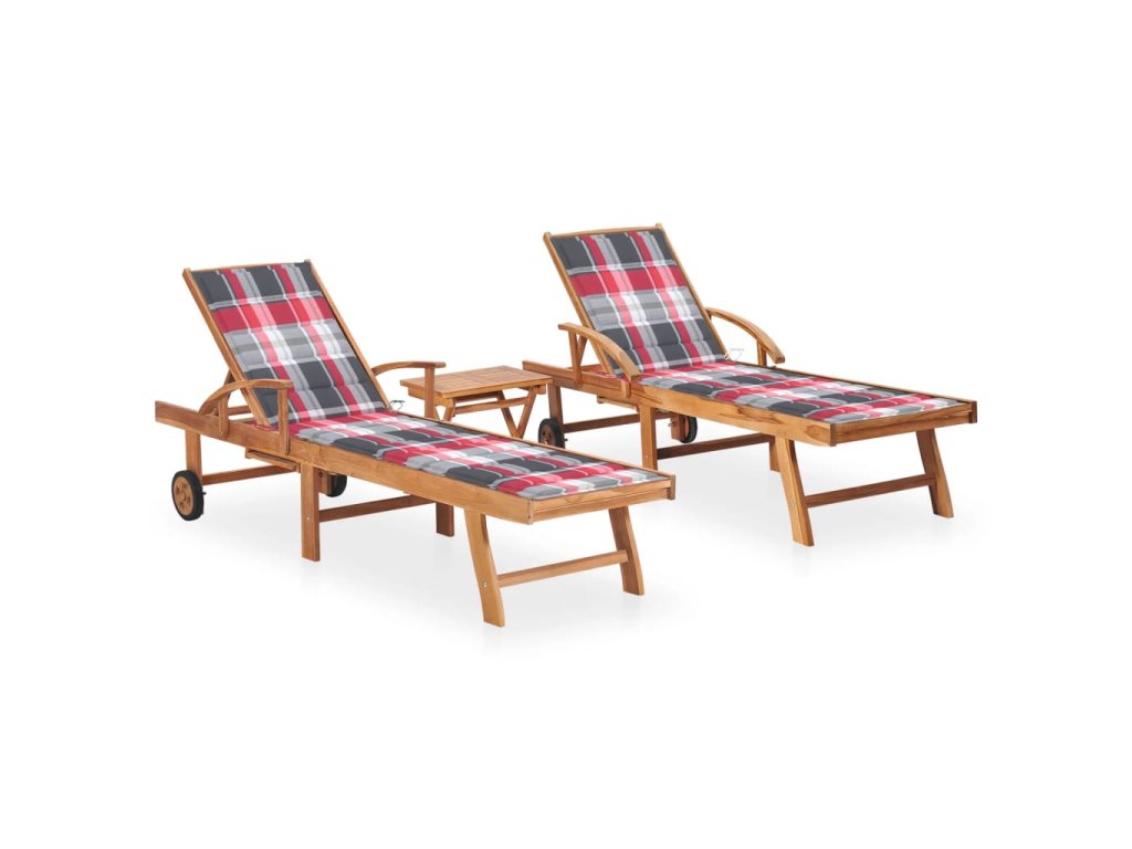 Zahradní lehátka 2 ks se stolkem a poduškou masivní teak 3073184