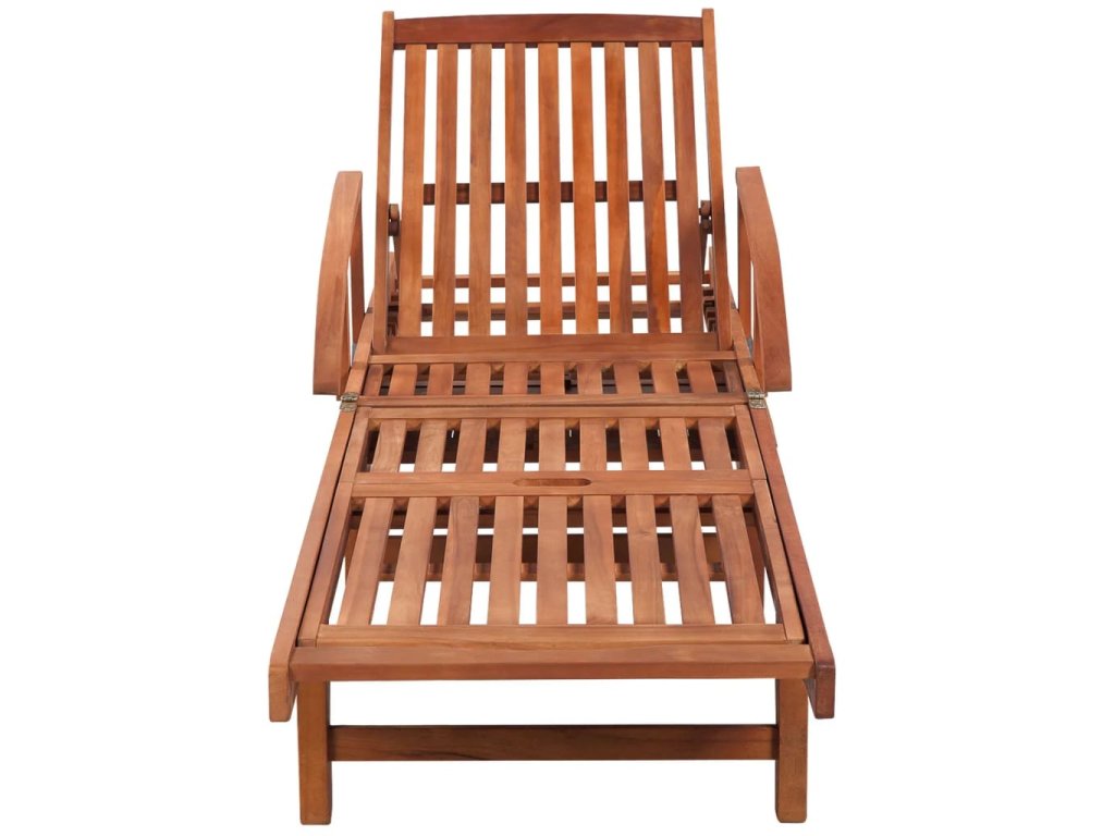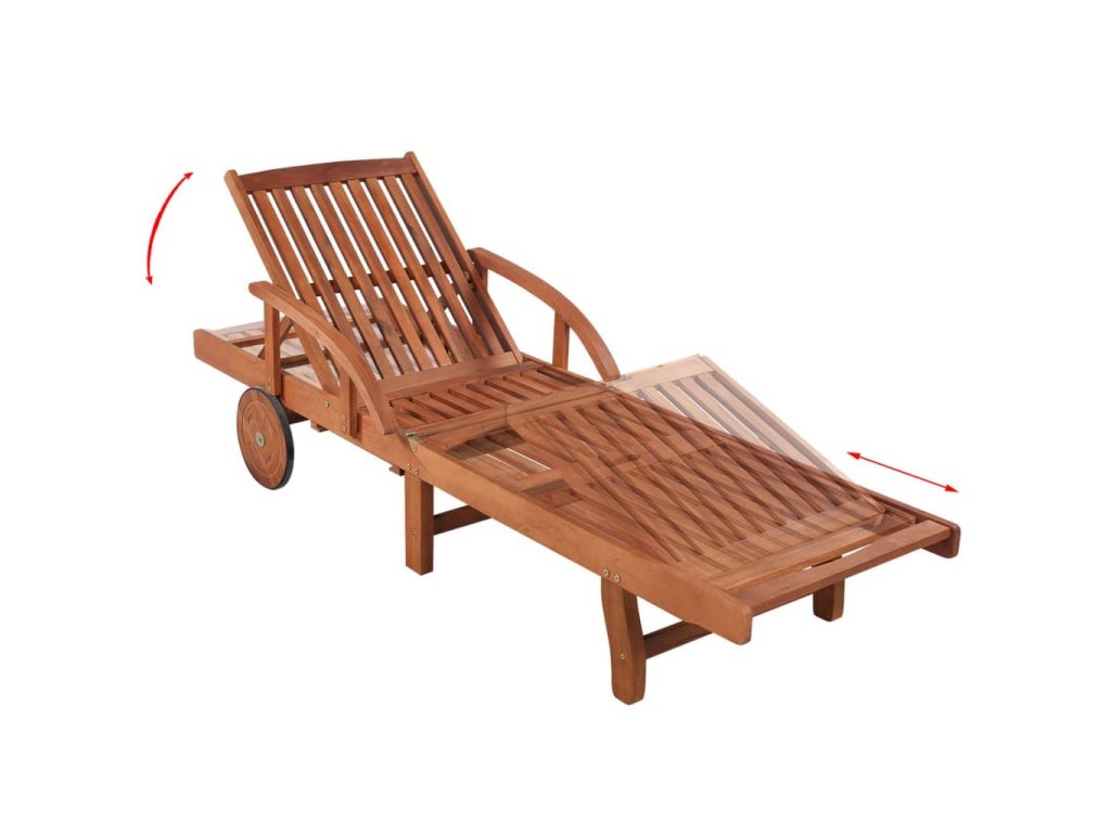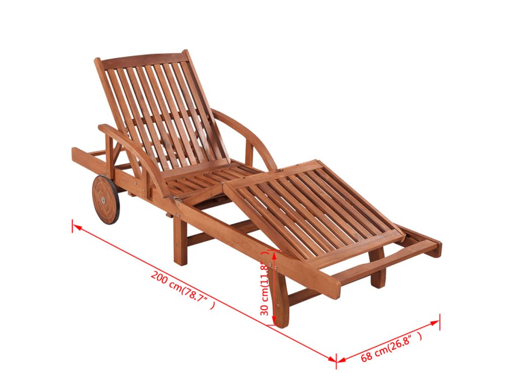 Toto lehátko je vyrobeno z trvanlivého masivního akáciového dřeva, které bylo ošetřeno přírodním olejem a vyznačuje se vynikající odolností proti povětrnostním vlivům. Díky tomu je naše zahradní sada vhodná pro venkovní použití. Vzhledem k tomu, že je opatřena dvěma kolečky, lze ji snadno přesouvat. Lehátko obsahuje i pohodlný vytahovací stolek, na který si můžete odložit telefon, sluneční brýle, nápoje a další drobné předměty.