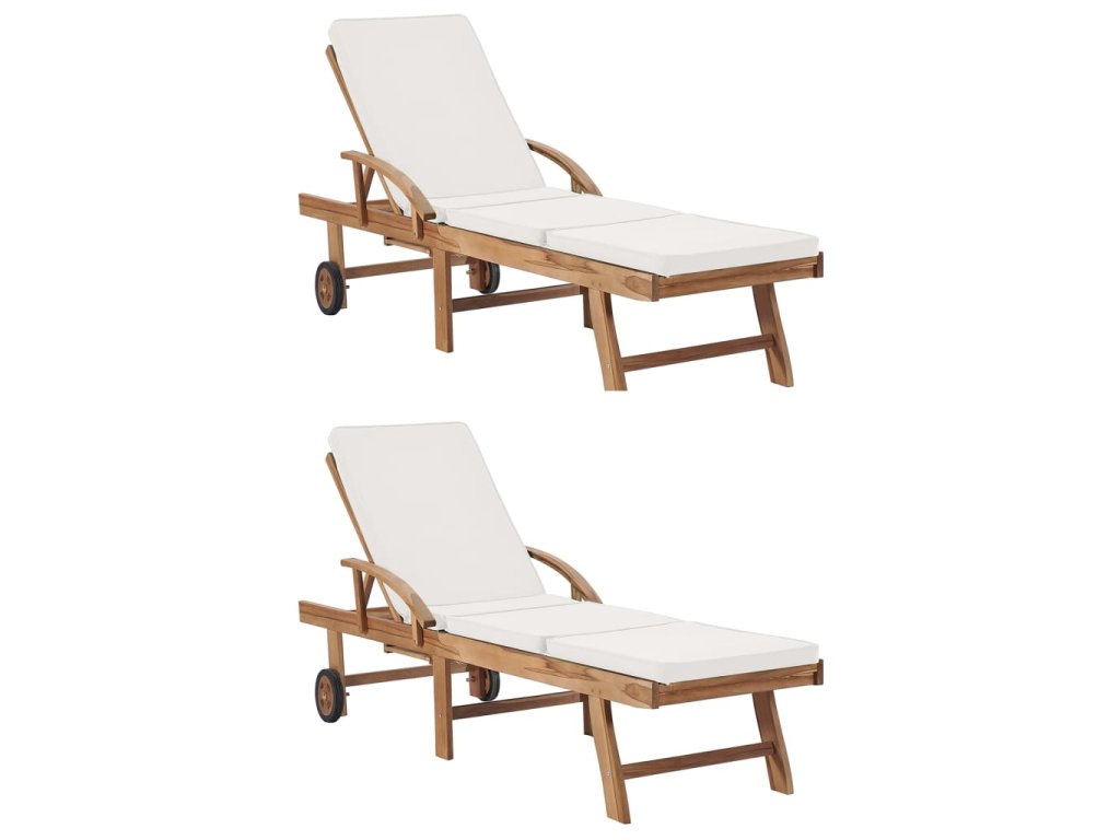 Zahradní lehátka s poduškami 2 ks masivní teak krémová 3054633