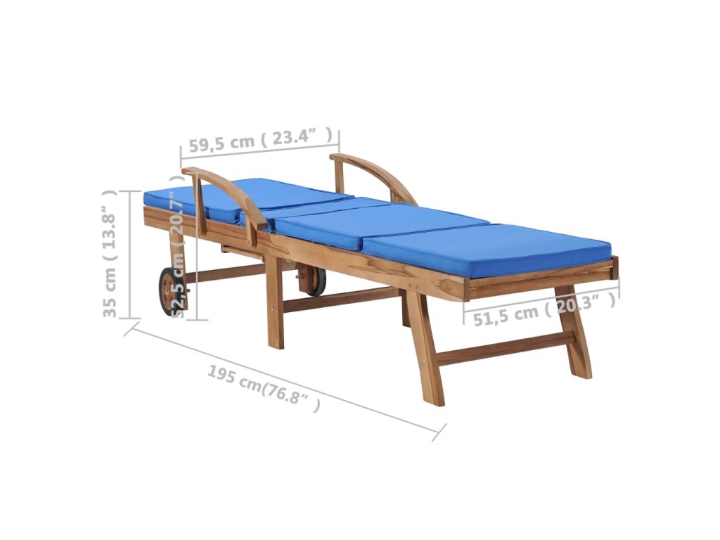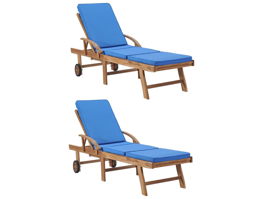 Zahradní lehátka s poduškami 2 ks masivní teak modrá 3054636