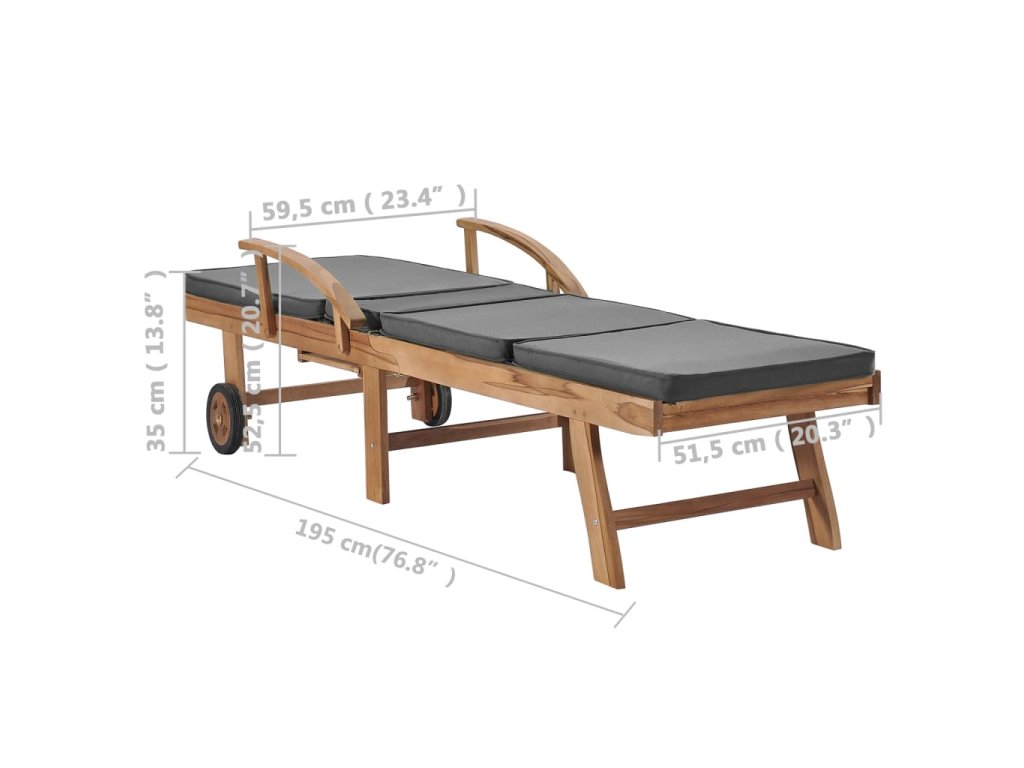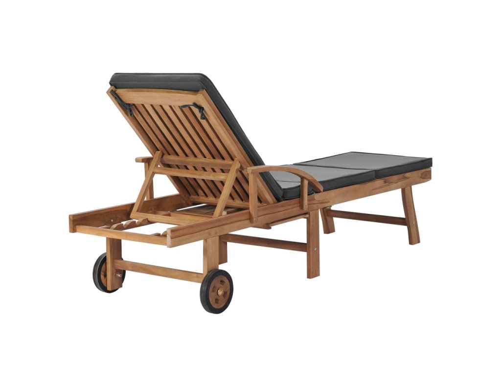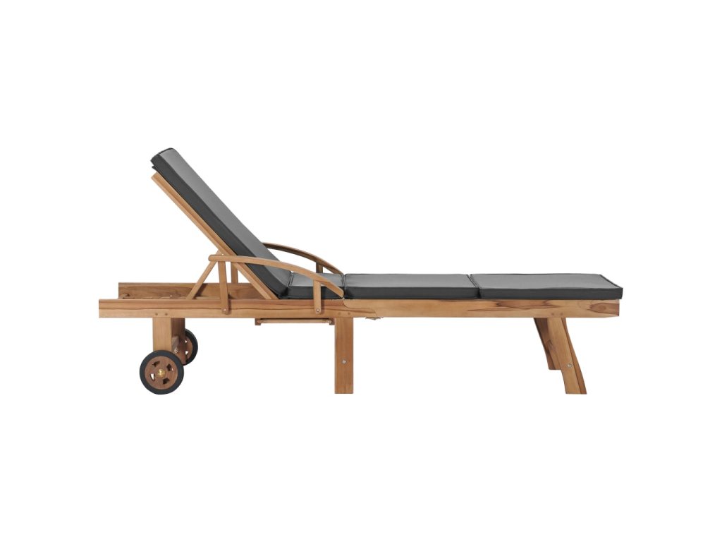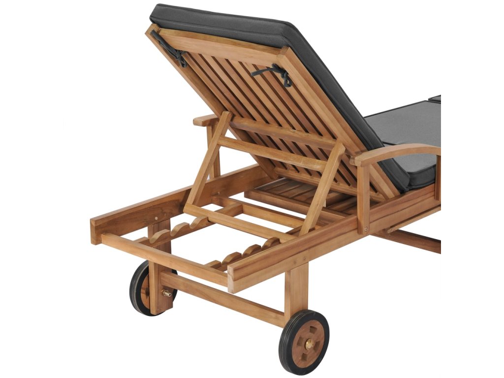 Nábytek je ošetřený lazurou, která dřevu dala krásný teplý odstín. Zahradní lehátka mají 2 kolečka, po kterých je můžete snadno přemisťovat. Spolu s lehátky obdržíte podušky, na kterých se velmi pohodlně odpočívá. Lehátkům nechybí ani praktické výsuvné stolky, na které si můžete odkládat telefon, sluneční brýle, nápoje a další drobné předměty, které chcete mít v dosahu ruky. Opěradla lehátek lze nastavit do 3 poloh, od vzpřímené polohy v sedě po zcela sklopenou polohu vleže. Podnožky jsou také nastavitelné.