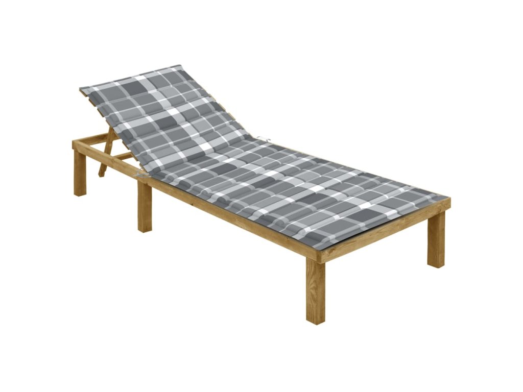 Zahradní lehátko a šedá károvaná poduška impregnovaná borovice 3065833