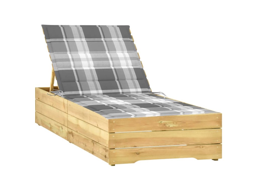 Zahradní lehátko a šedá károvaná poduška impregnovaná borovice 3065923