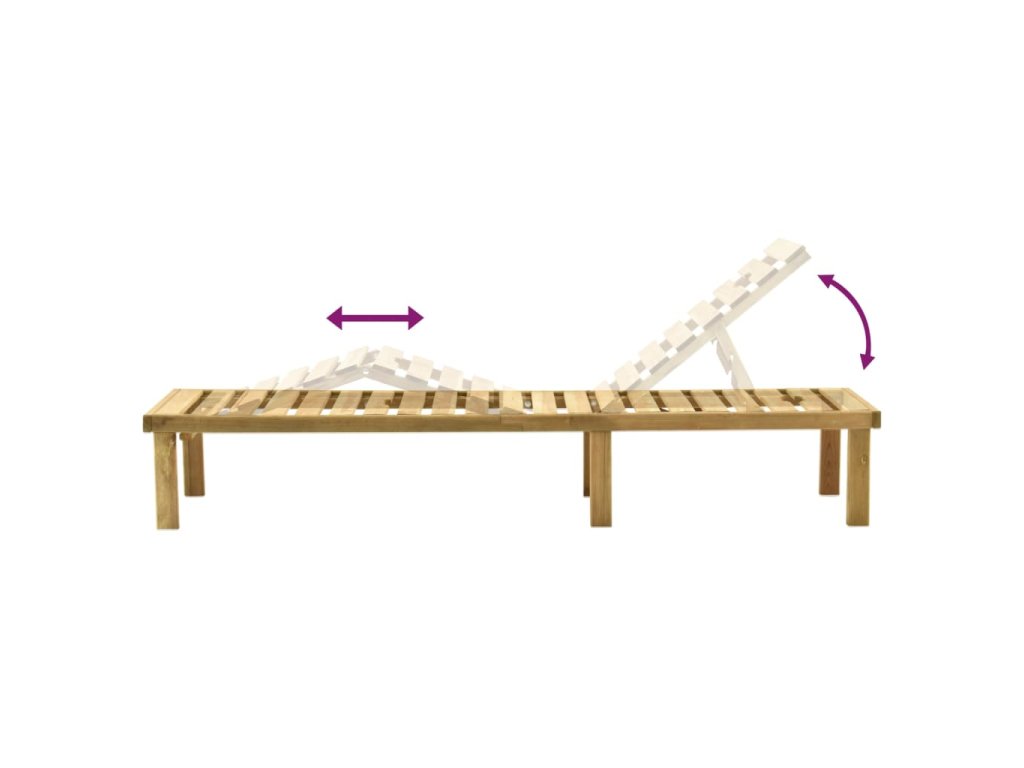 Toto zahradní lehátko je vyrobené z impregnovaného borového dřeva, které je odolné vůči hnilobě a má velmi dlouhou životnost, takže je extrémně vhodné pro venkovní použití. Opěradlo a opěrka nohou jsou nastavitelné, protože můžete najít nejpohodlnější polohu.
