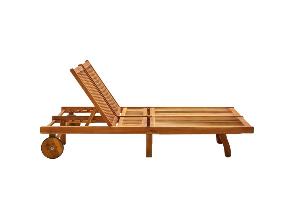 Zahradní lehátko je vyrobené z masivního akáciového dřeva, takže je robustní a stabilní. Opěrky zad a nohou jsou polohovatelné a můžete si je snadno nastavit do požadované pozice. Opalovací lehátko se 2 kolečky bez námahy přemístíte, kam zrovna potřebujete. Poduška přispívá k optimálnímu komfortu během vaší relaxace.