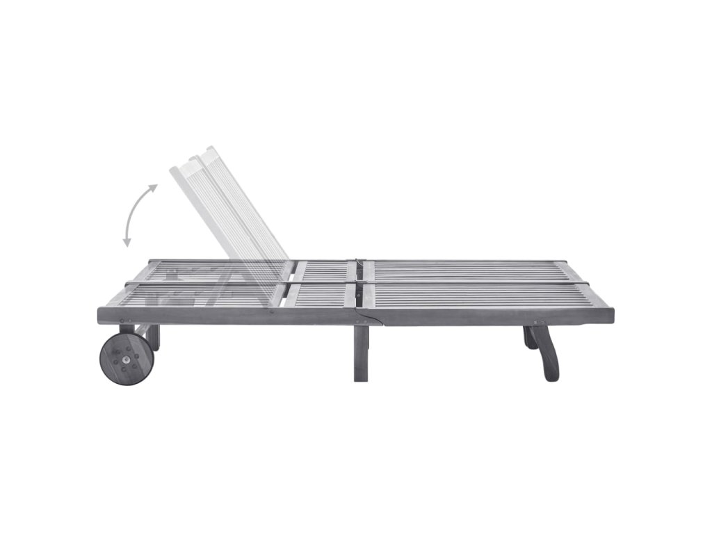 Zahradní lehátko je vyrobené z masivního akáciového dřeva s šedou povrchovou úpravou, takže je robustní a stabilní. Opěrky zad a nohou jsou polohovatelné a můžete si je snadno nastavit do požadované pozice. Opalovací lehátko se 2 kolečky bez námahy přemístíte, kam zrovna potřebujete. Poduška přispívá k optimálnímu komfortu během vaší relaxace.