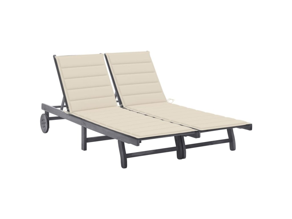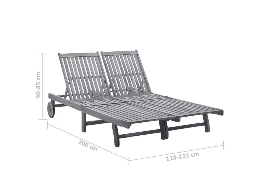 Zahradní lehátko pro 2 osoby s poduškou šedé masivní akácie 3061391