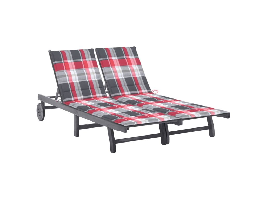 Zahradní lehátko pro 2 osoby s poduškou šedé masivní akácie 3061402