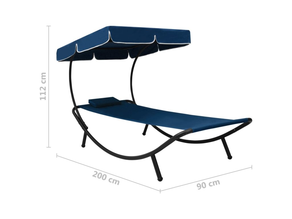 Zahradní lehátko s baldachýnem a polštářem modré 313535