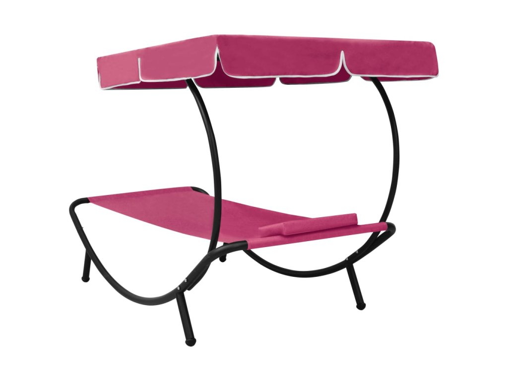Zahradní lehátko s baldachýnem a polštářem růžové 313536