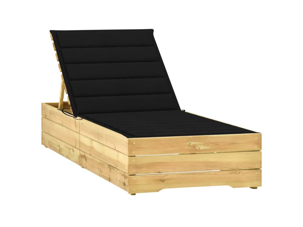 Zahradní lehátko s černou poduškou impregnované borové dřevo 3065916