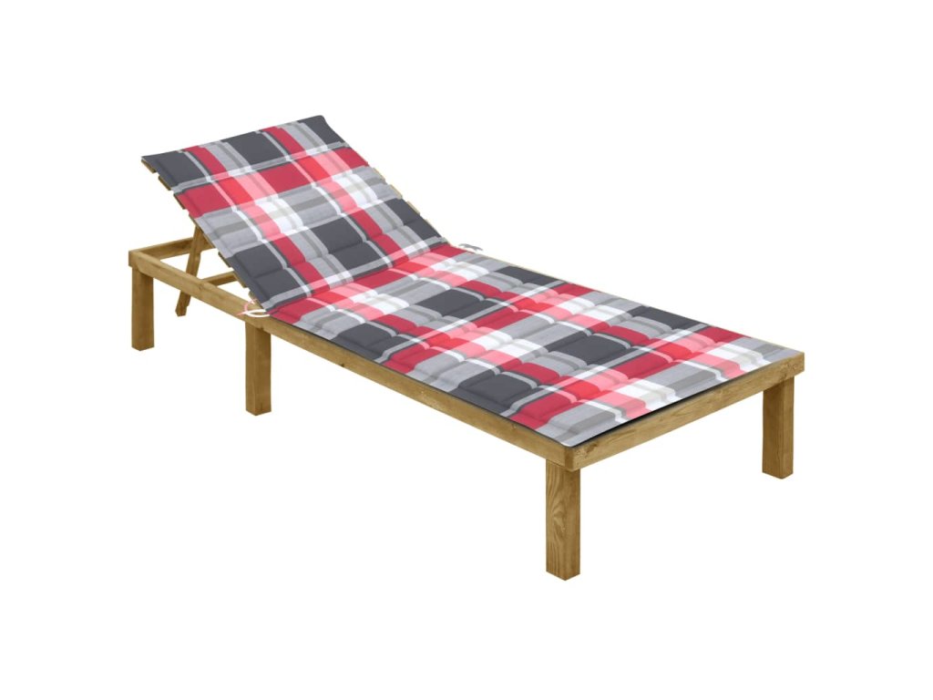 Zahradní lehátko s červenou károvanou poduškou borové dřevo 3065832