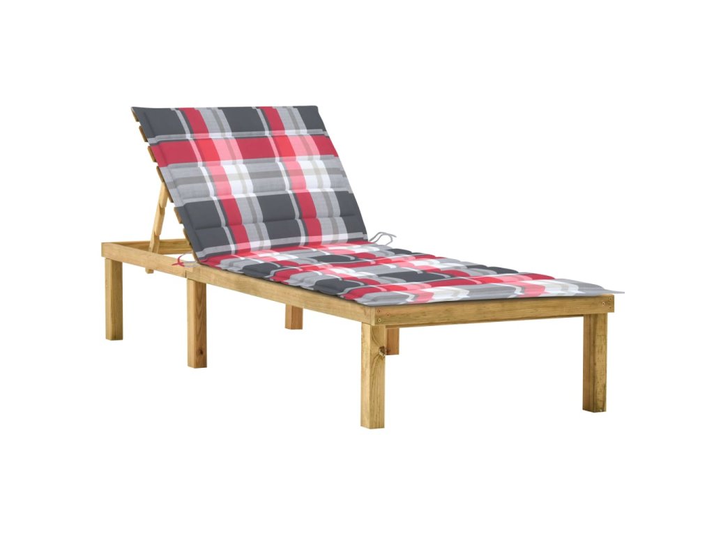 Zahradní lehátko s červenou károvanou poduškou borové dřevo 3065862