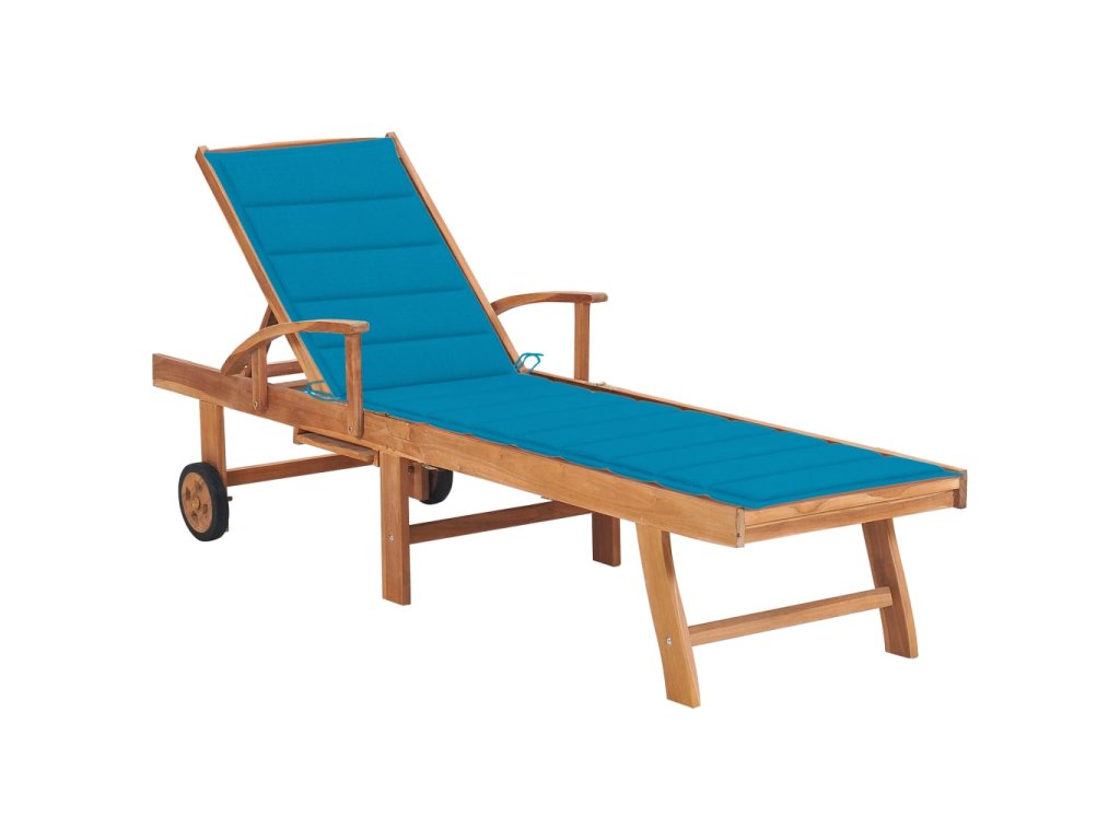 Zahradní lehátko s modrou poduškou masivní teak 3063010