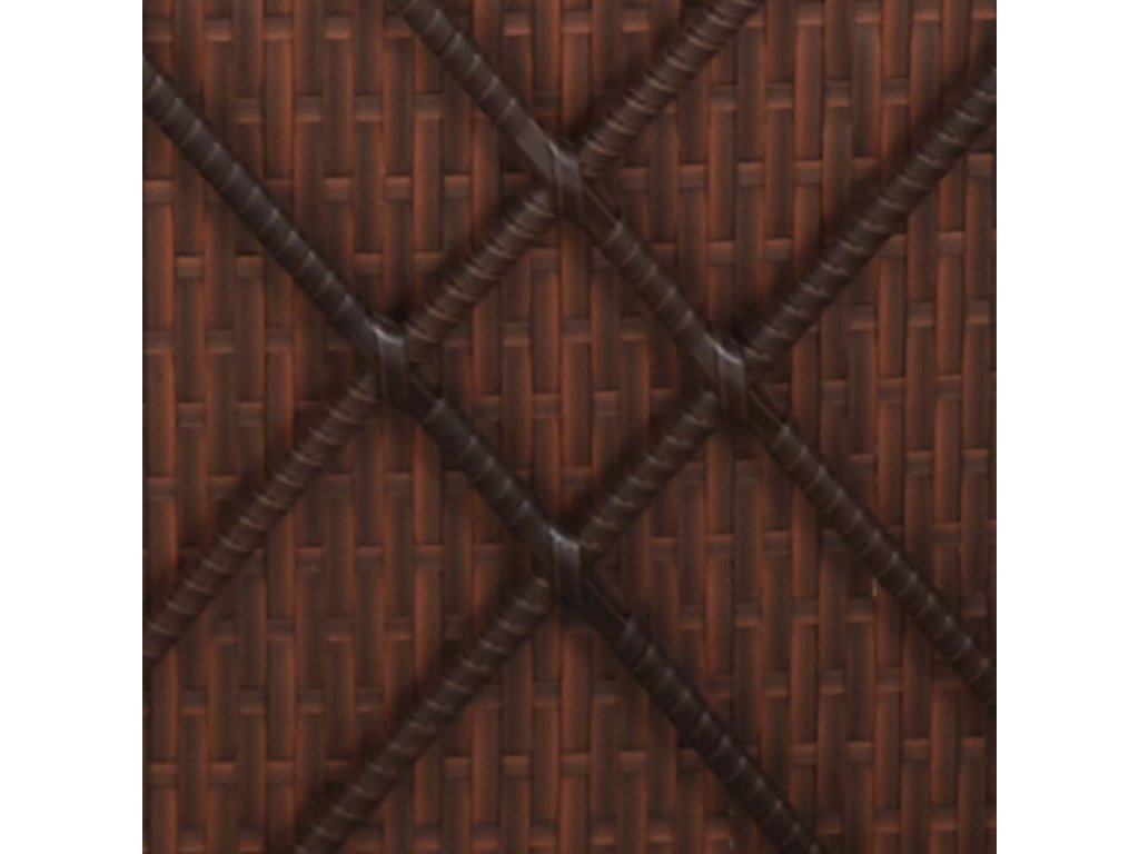 - Materiál: PE ratan, práškově lakovaná ocel, tkanina (100% polyester), plast potažený hliníkem