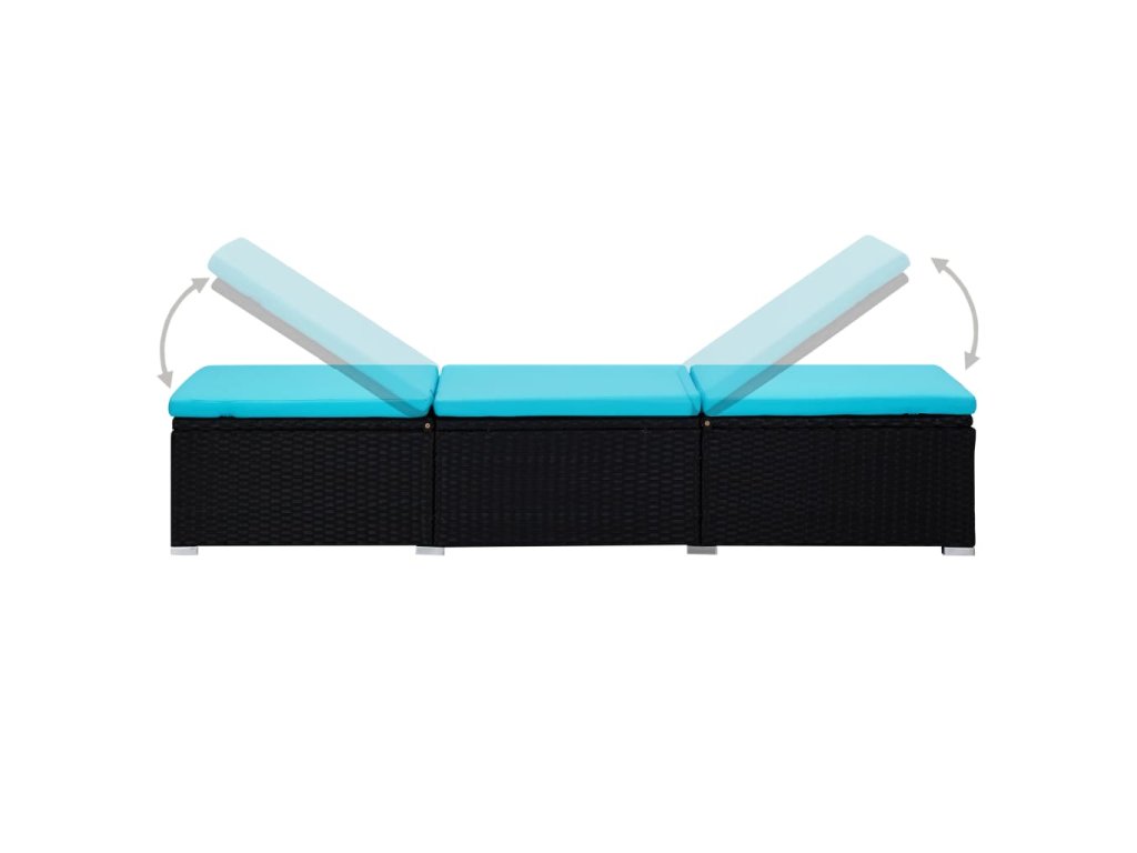 Zahradní lehátko s poduškou a čajovým stolkem polyratan modré 310227