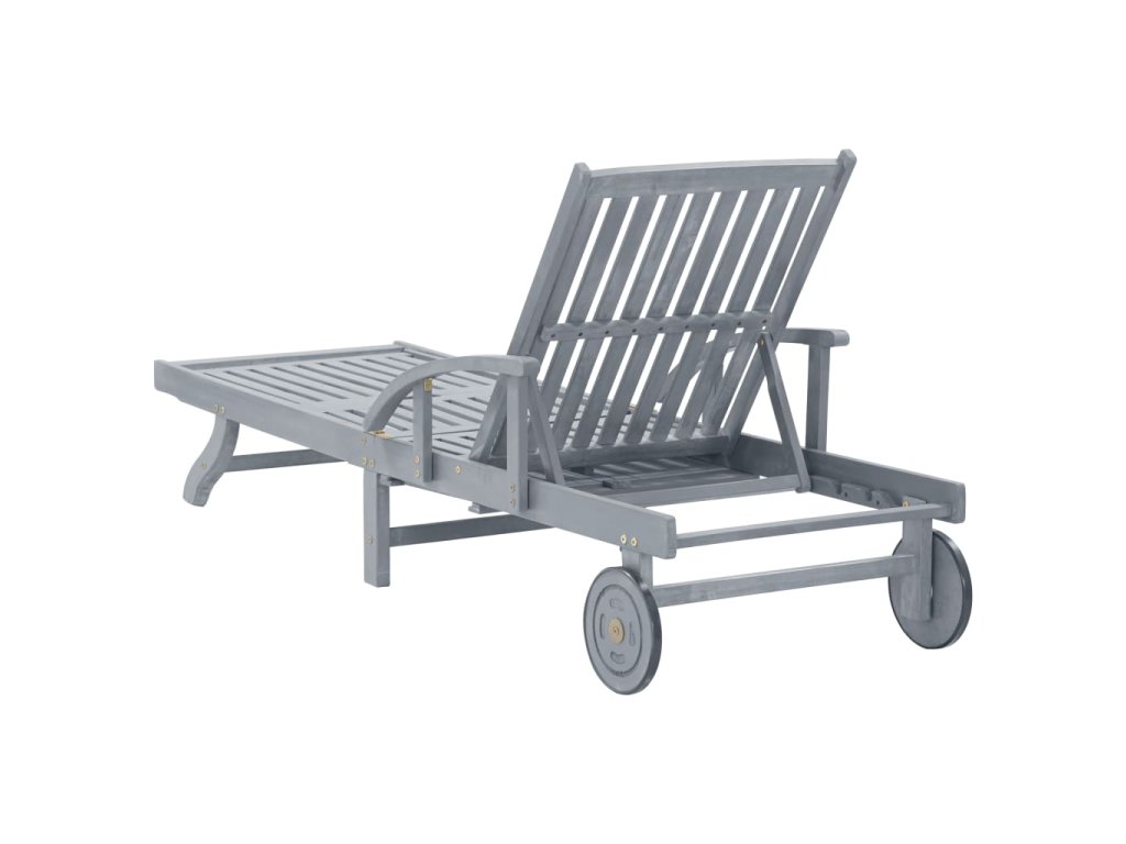 Toto zahradní lehátko je vyrobené z masivního akáciového dřeva s šedou povrchovou úpravou, takže je robustní a stabilní. Opěrky zad a nohou jsou polohovatelné a můžete je snadno nastavit do požadované polohy. Toto zahradní lehátko se 2 kolečky snadno přemístíte, kamkoliv potřebujete. Lehátko je vybavené praktickým výsuvným stolkem, na který můžete položit telefon, sluneční brýle, pití a další drobné předměty. Polštářek přispívá k optimálnímu komfortu během vaší relaxace. Každá poduška je vybavená dvěma páry šňůrek, abyste ji mohli pevně zafixovat k lehátku.
