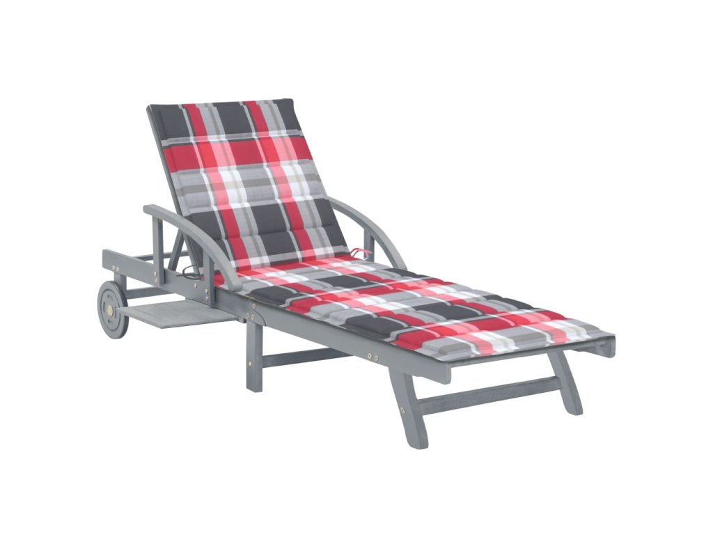 Toto zahradní lehátko je vyrobené z masivního akáciového dřeva s šedou povrchovou úpravou, takže je robustní a stabilní. Opěrky zad a nohou jsou polohovatelné a můžete je snadno nastavit do požadované polohy. Toto zahradní lehátko se 2 kolečky snadno přemístíte, kamkoliv potřebujete. Lehátko je vybavené praktickým výsuvným stolkem, na který můžete položit telefon, sluneční brýle, pití a další drobné předměty. Polštářek přispívá k optimálnímu komfortu během vaší relaxace. Každá poduška je vybavená dvěma páry šňůrek, abyste ji mohli pevně zafixovat k lehátku.