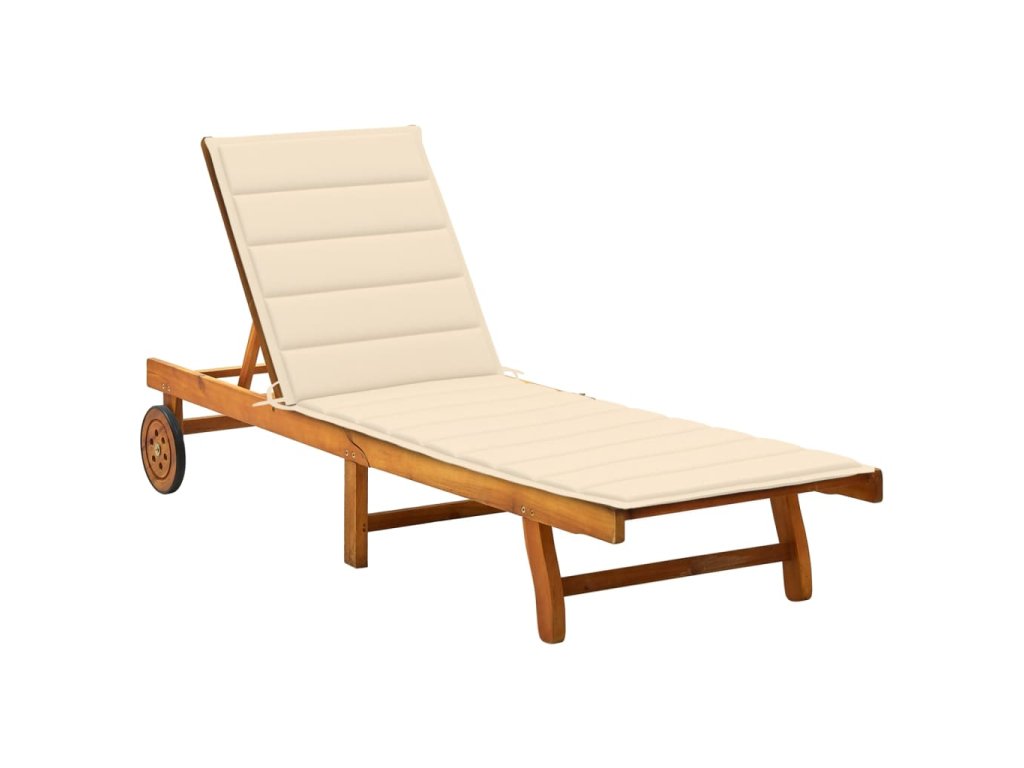 Toto zahradní lehátko je vyrobené z masivního akáciového dřeva, takže je robustní a stabilní. Opěrky zad a nohou jsou polohovatelné a můžete je snadno nastavit do požadované polohy. Toto zahradní lehátko se 2 kolečky snadno přemístíte, kamkoliv potřebujete. Lehátko je vybavené praktickým výsuvným stolkem, na který můžete položit telefon, sluneční brýle, pití a další drobné předměty. Polštářek přispívá k optimálnímu komfortu během vaší relaxace. Každá poduška je vybavená dvěma páry šňůrek, abyste ji mohli pevně zafixovat k lehátku.
