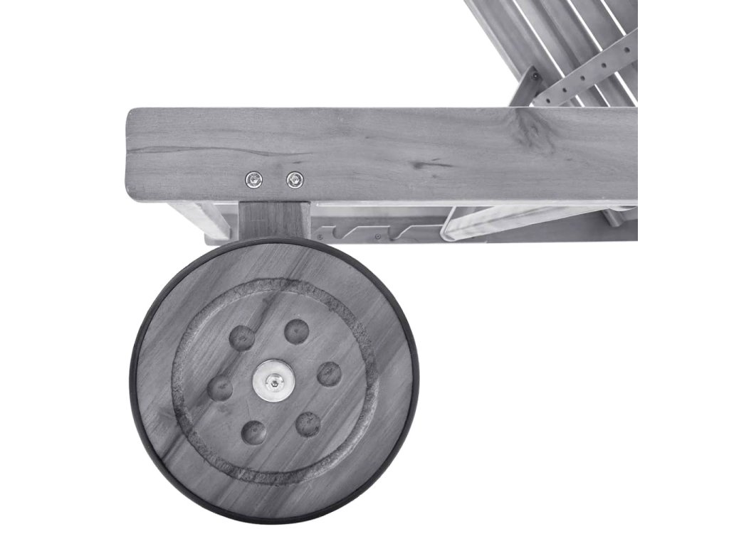 Zahradní lehátko je vyrobené z masivního akáciového dřeva s šedou povrchovou úpravou, takže je robustní a stabilní. Opěrky zad a nohou jsou polohovatelné a můžete si je snadno nastavit do požadované pozice. Opalovací lehátko se 2 kolečky bez námahy přemístíte, kam zrovna potřebujete. Poduška přispívá k optimálnímu komfortu během vaší relaxace.