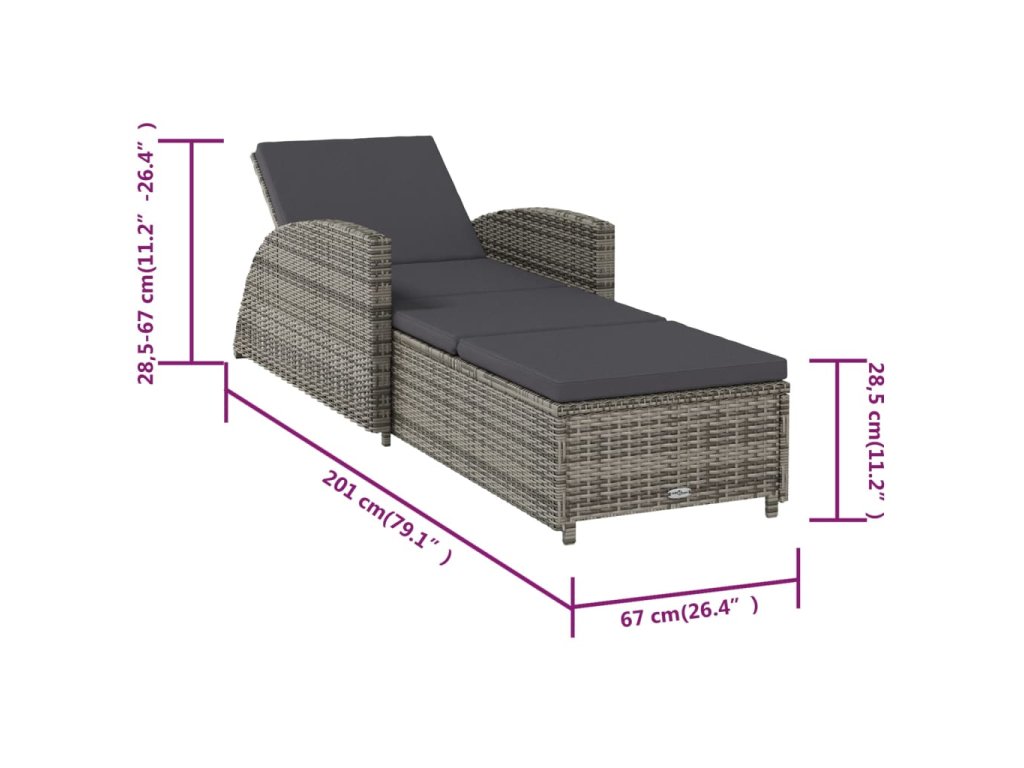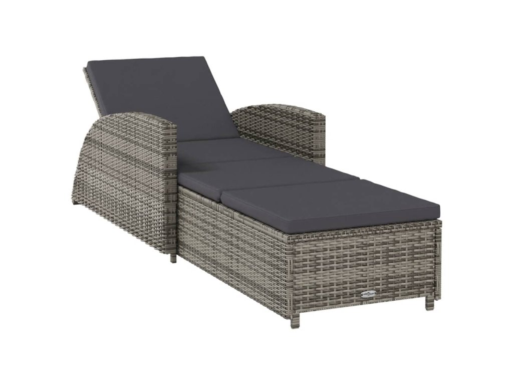Zahradní lehátko s tmavě šedou poduškou polyratan šedé 317178