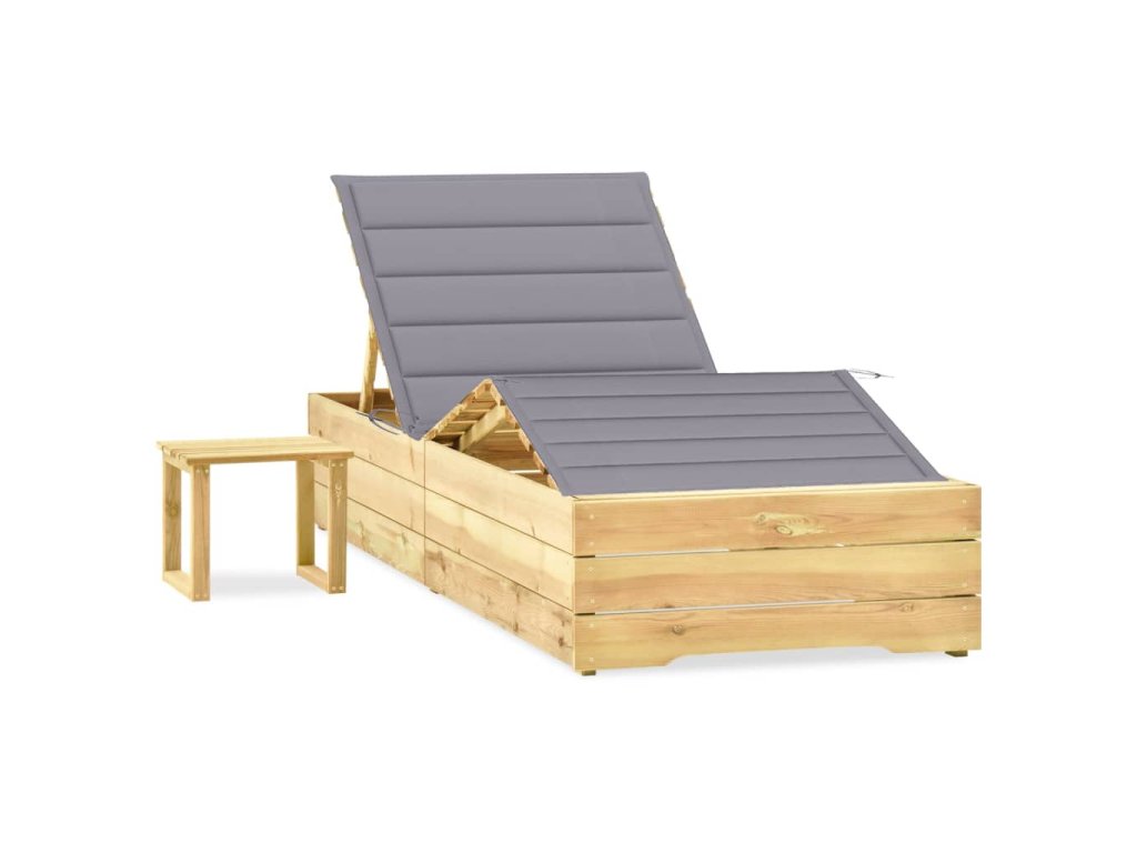Zahradní lehátko se stolkem a poduškou impregnovaná borovice 3065955