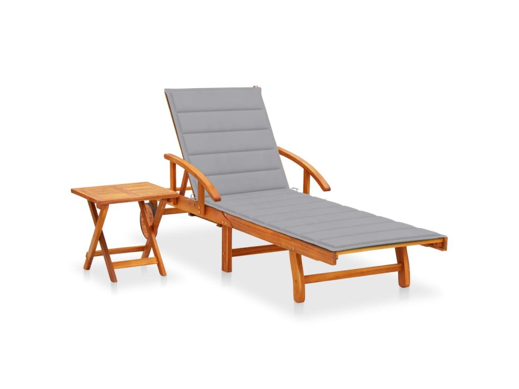 Zahradní lehátko se stolkem a poduškou masivní akáciové dřevo 3061618