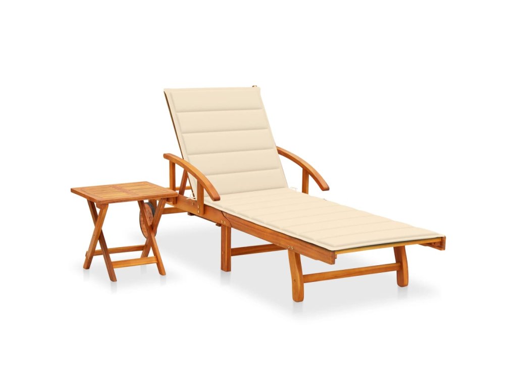 Zahradní lehátko se stolkem a poduškou masivní akáciové dřevo 3061619