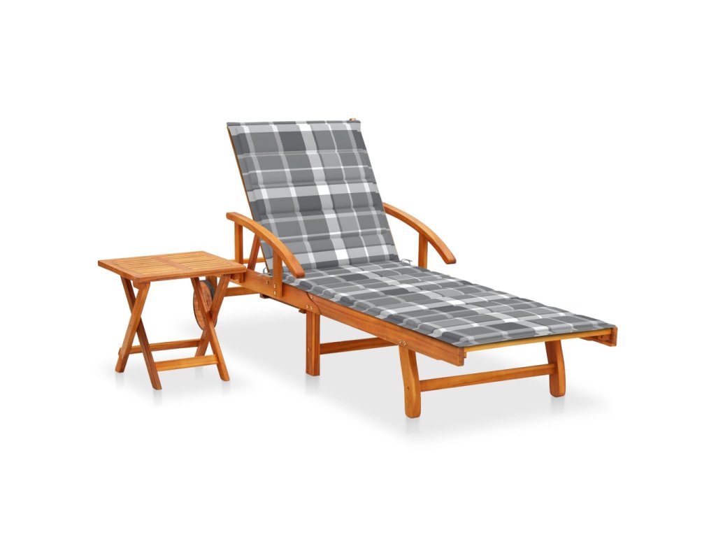 Zahradní lehátko se stolkem a poduškou masivní akáciové dřevo 3061631