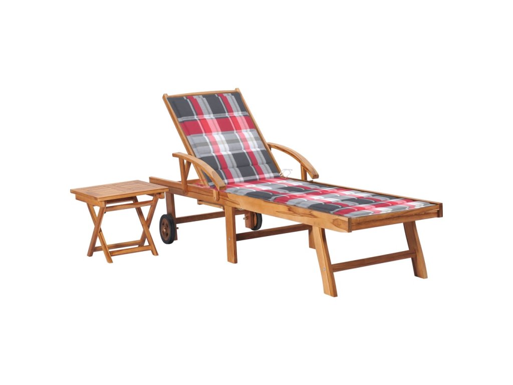 Zahradní lehátko se stolkem a poduškou masivní teak 3063034
