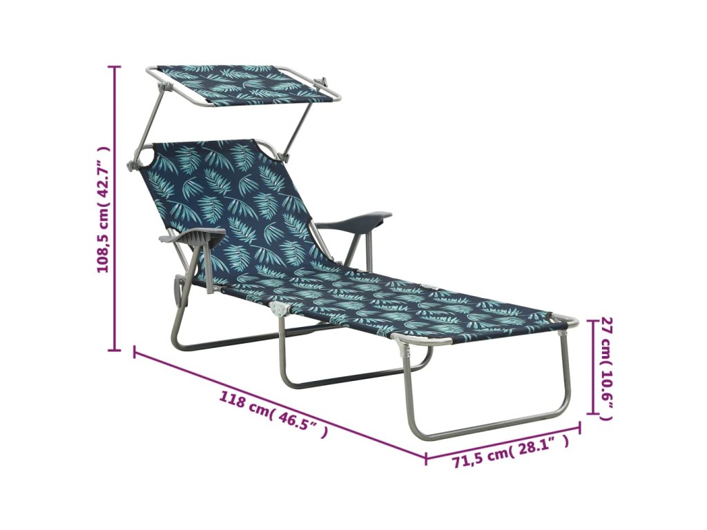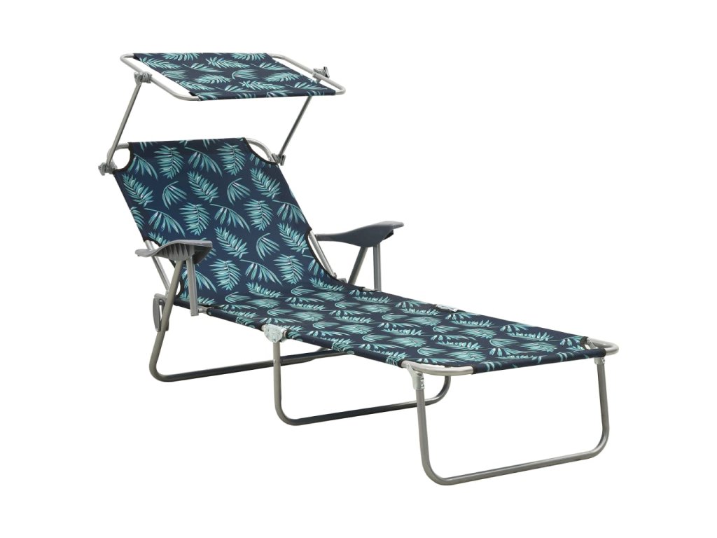 Zahradní lehátko se stříškou ocel potisk s listy 310338