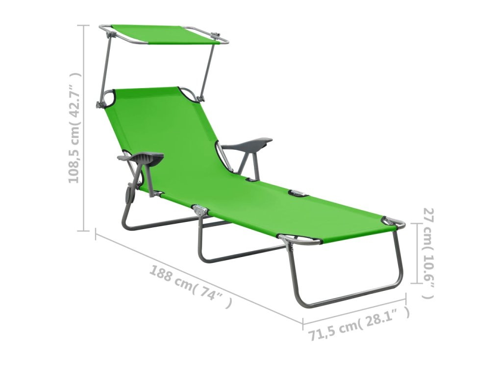 Toto moderní skládací opalovací lehátko s baldachýnem je dokonalé místo k odpočinku a trávení příjemného dne na zahradě nebo na pláži.