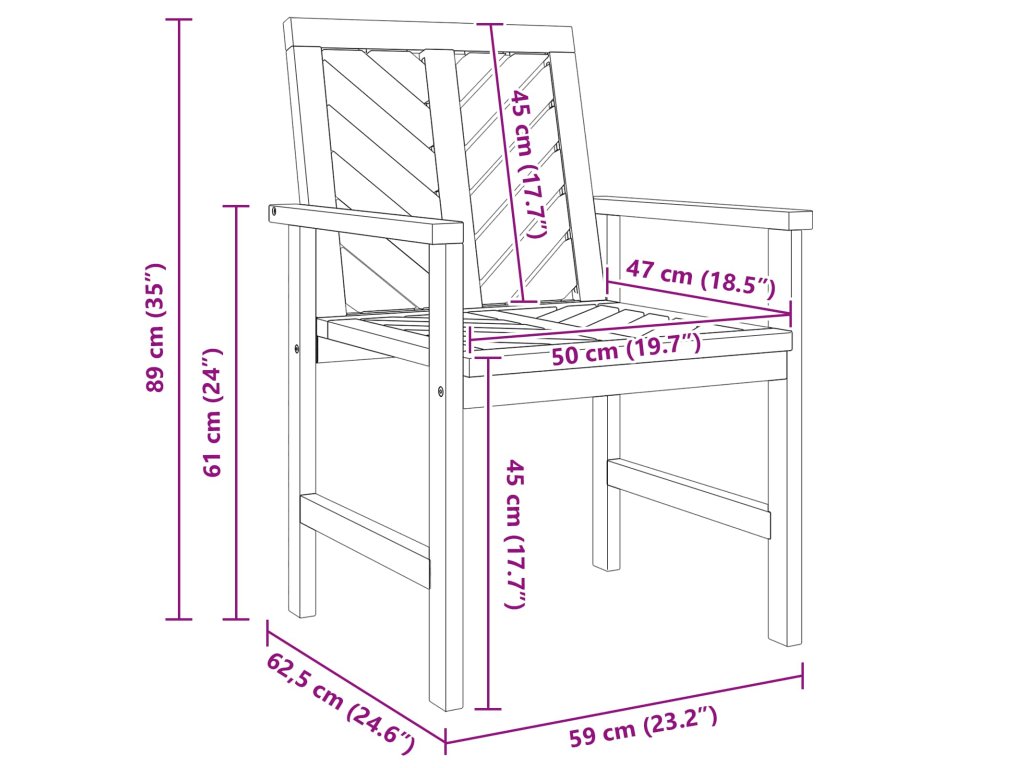 - 2 x židle: 62,5 x 59 x 89 cm (D x Š x V)