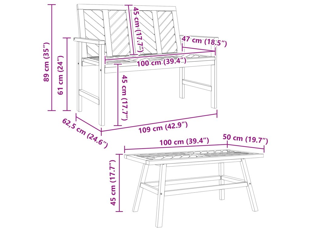 - 1 x lavice: 109 x 62,5 x 89 cm (D x Š x V)
