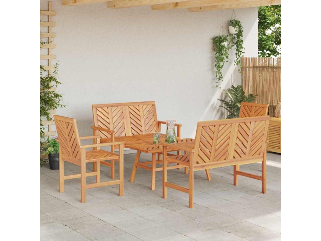 - Kvalitní akáciové dřevo: Tato lounge set je vyrobena z pevného akáciového dřeva, což jí dává přírodní vzhled, který se hodí do každé zahrady nebo terasy. Je dostatečně odolná na to, aby zvládla povětrnostní podmínky, což z ní dělá skvélou volbu pro venkovní zábavu.