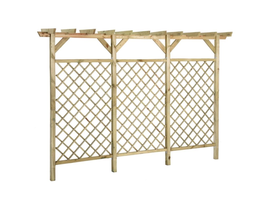 Tento dřevěný mřížkovaný plot s pergolou má atraktivní, a přitom praktický design a bude se dokonale hodit do vaší zahrady.