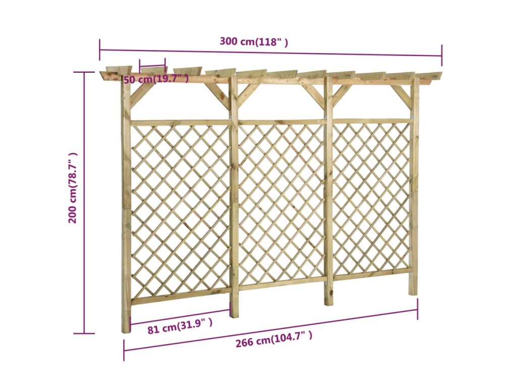 Zahradní mřížkovaný plot s pergolou 300 x 50 x 200 cm borovice 318417