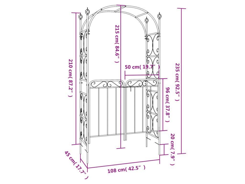 Zahradní oblouk s brankou černý 108 x 45 x 235 cm ocel 319352