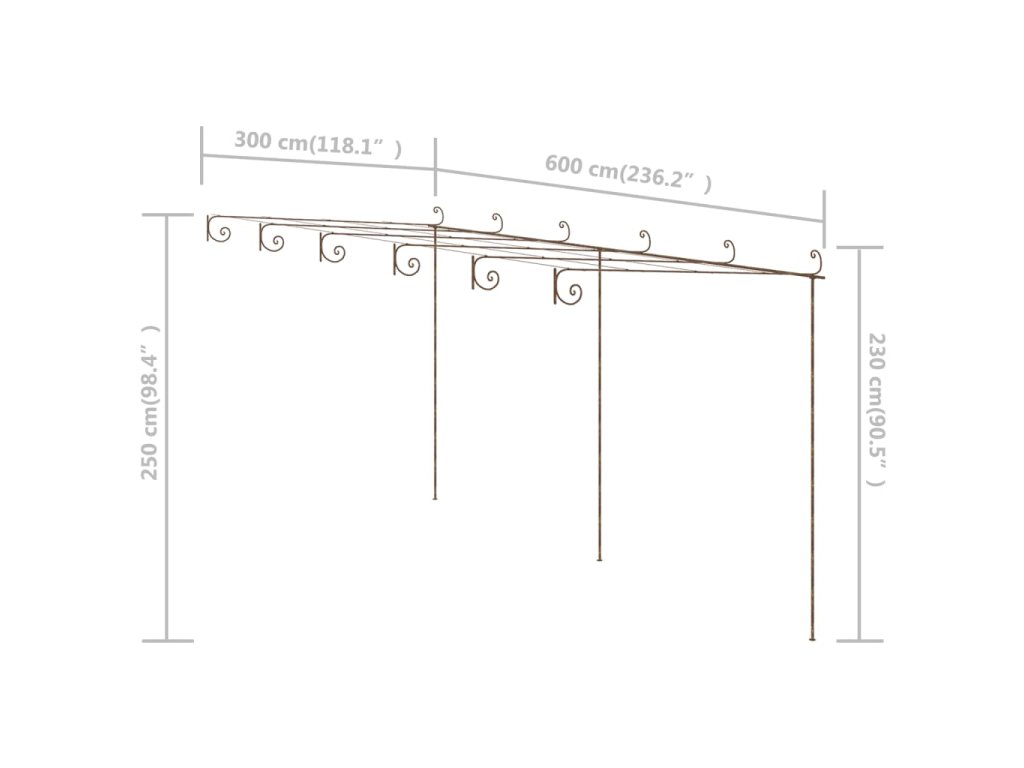Zahradní pergola hnědá s patinou 6 x 3 x 2,5 m železná 313999