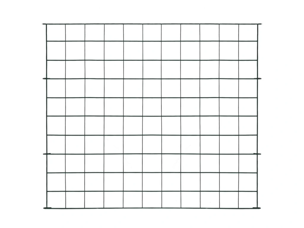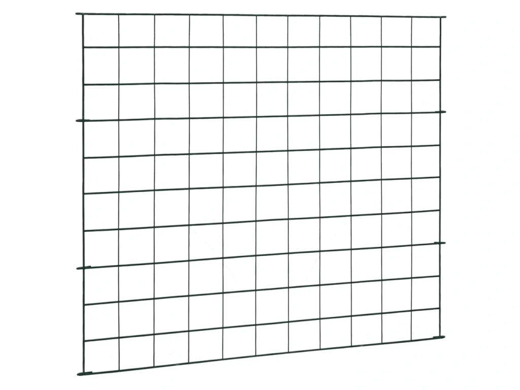 Plot je vyrobený z práškově lakovaného ocelového drátu, který je odolný vůči rzi a vydrží vám venku spolehlivě sloužit po dlouhá léta. Jeho instalace je snadná – stačí zatlouct robustní fixační sloupky, jež se nachází po stranách průchodek jednotlivých plotových dílců, pevně do země.