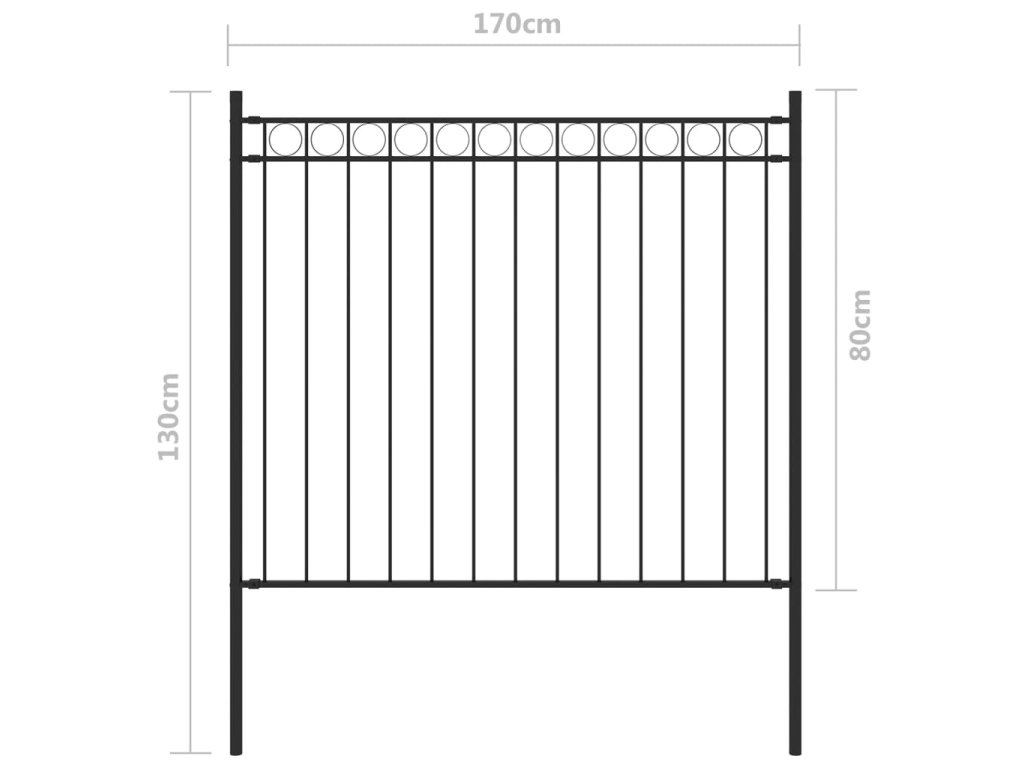 Tento okrajový plot poskytuje vysoký stupeň zabezpečení a soukromí díky elegantnímu kruhovému designu a silným vodorovným sloupkům pro zpevnění rámu. Venkovní plot, vyrobený z odolné práškově lakované oceli, je také velmi pevný, stabilní, robustní a odolný. Montážní materiál je součástí dodávky.
