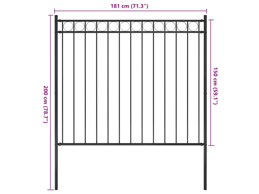 Zahradní plot ocelový 1,81 x 1,5 m černý 146315