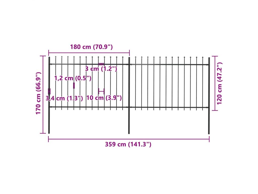 Zahradní plot s hroty ocelový 3,4 x 1,2 m černý 277621