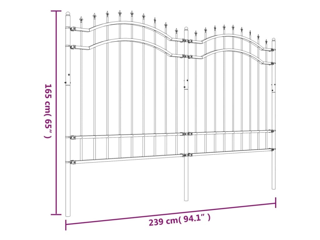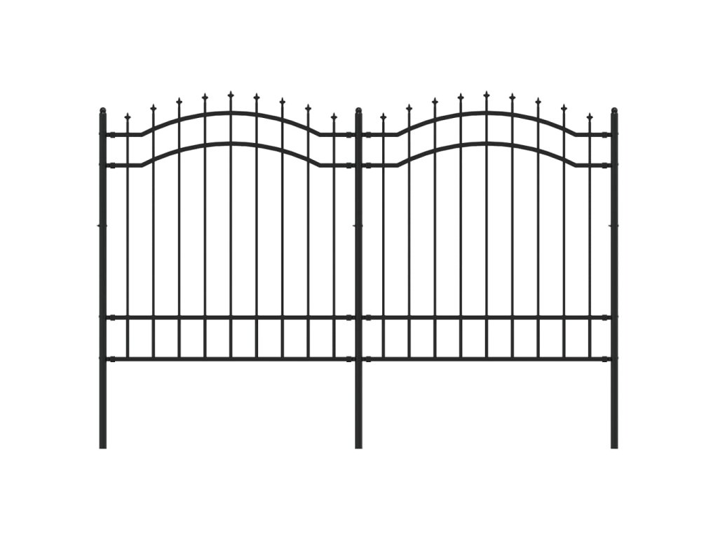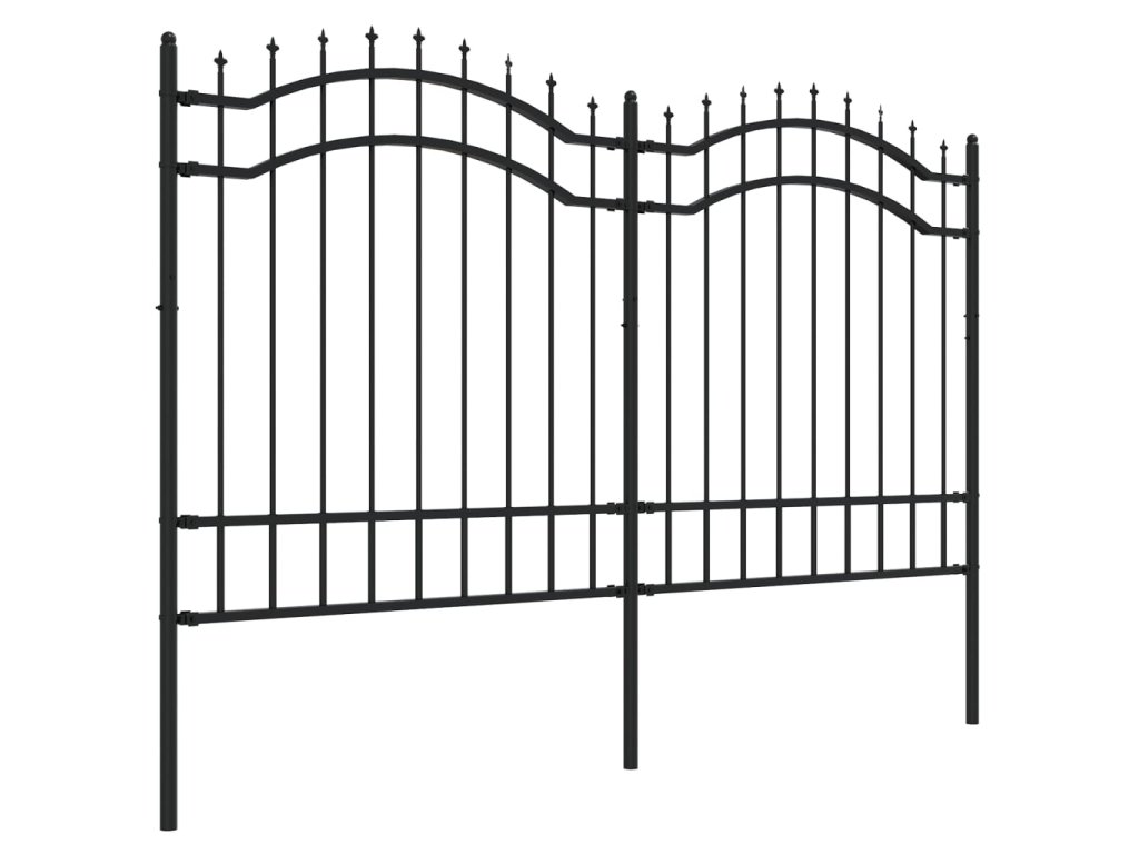 Zahradní plot s kopím nahoře černý 239 x 125 cm, práškově lakovaná ocel 151081