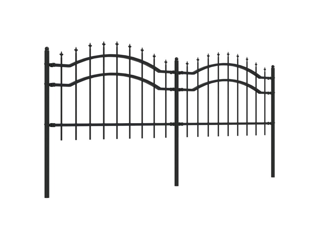 Zahradní plot s kopím nahoře černý 239 x 75 cm, práškově lakovaná ocel 151079