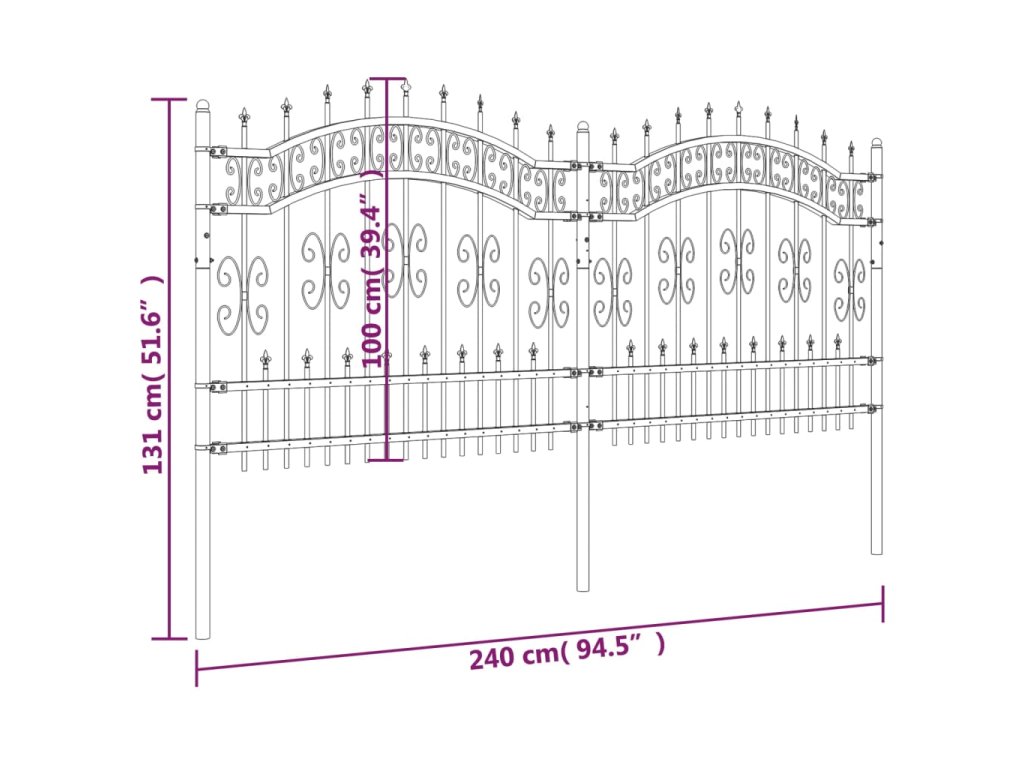 Zahradní plot s kopím nahoře černý 240 x 100 cm, práškově lakovaná ocel 151085