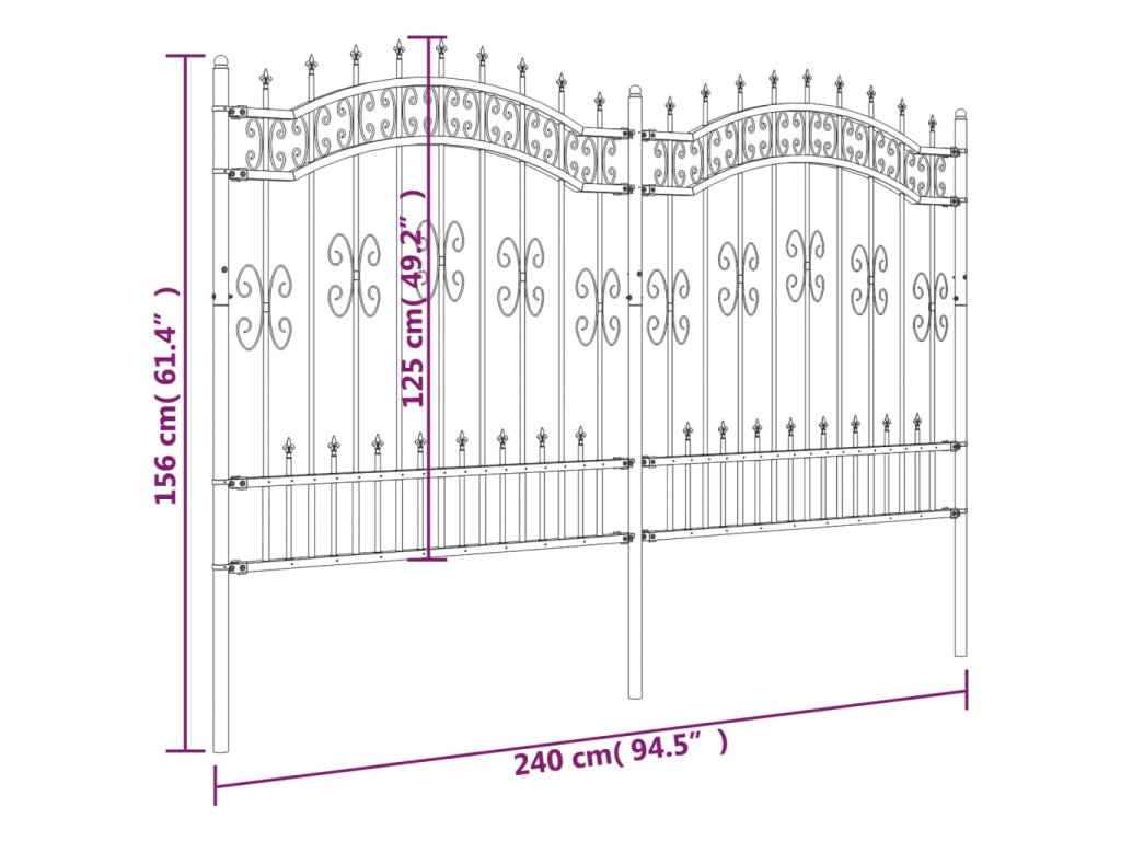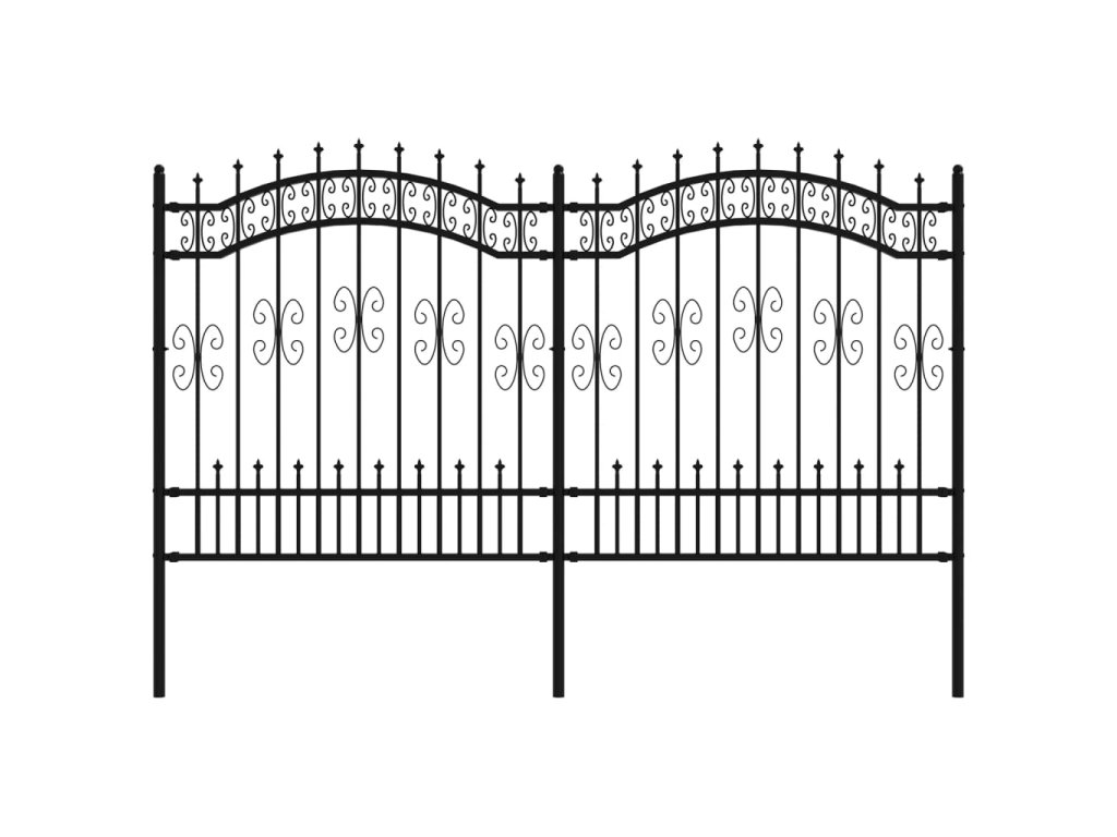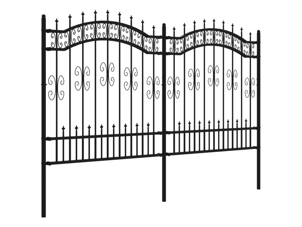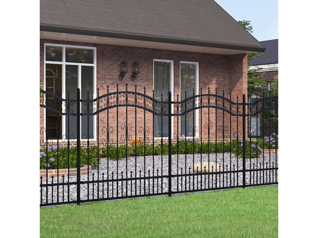 Zahradní plot s kopím nahoře černý 240 x 125 cm, práškově lakovaná ocel 151086